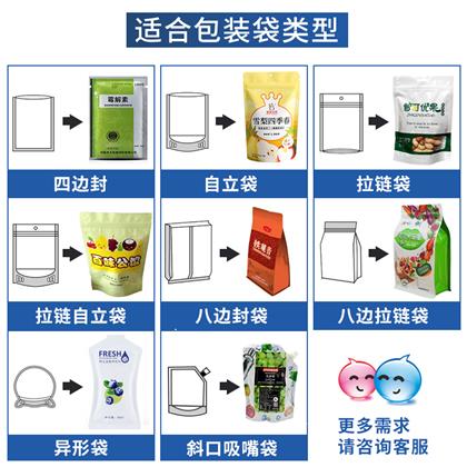 包裝材料:聚酯/聚乙烯、聚酯鍍鋁聚乙烯、聚酯鋁箔聚乙烯、紙聚乙烯、尼龍等可熱封的復合材料。